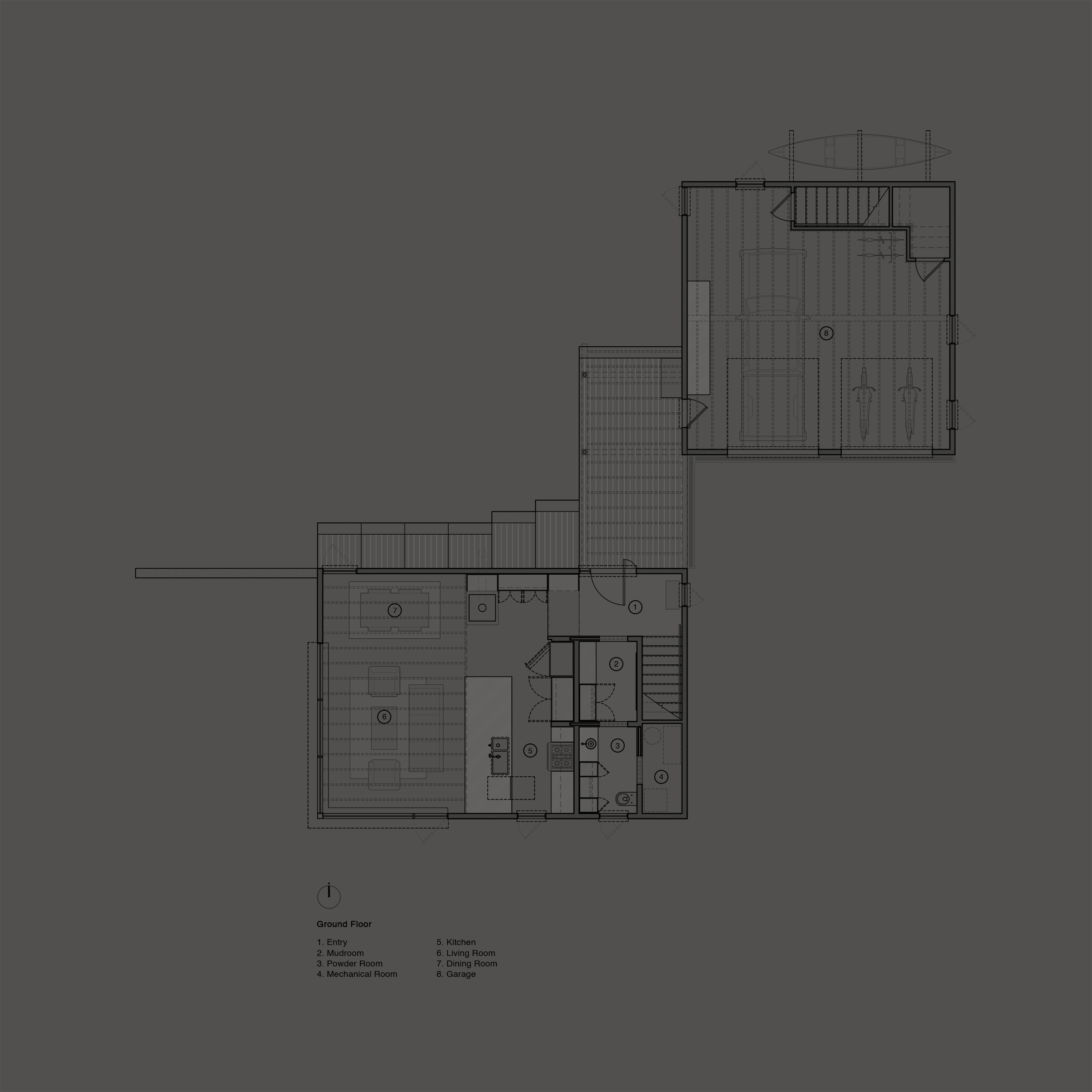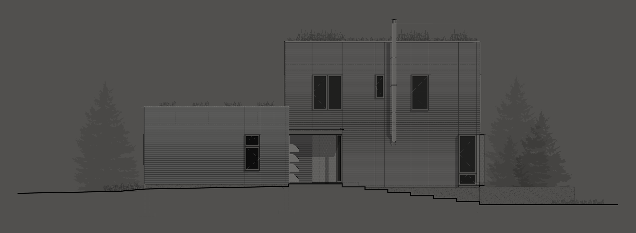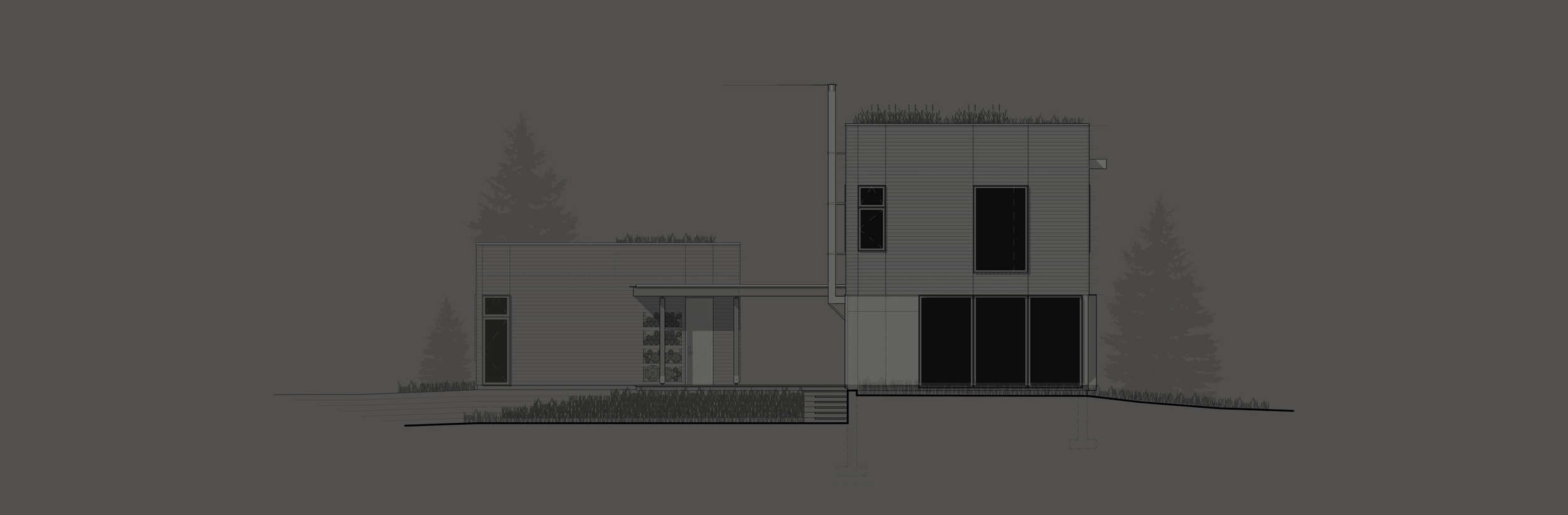 The Encampment home is nestled close to the northern New Hampshire border and Canadian wilderness. The client, a retired logger from Maine, wanted a simple, modern home that would be tucked away into the old growth forests. Following the principles of prospect and refuge, the house is situated on a bluff that overlooks the lush green landscape below while still being protected from harsh winter winds and cold northern air. The project, still in its infancy, allows the client to make changes readily; giving us time to understand the intricacies of the site and ecology as it cycles though it’s seasons.